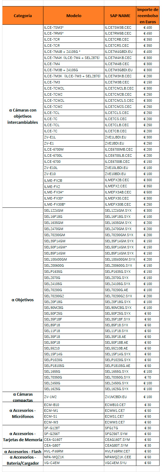 Cámaras, objetivos y accesorios seleccionados en la Promoción Sony Cashback Estudiantes